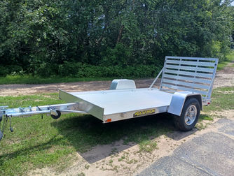 We offer a versatile 5.5' x 10' aluminum trailer with ramps, equipped with a 4 prong flat plug and a 2-inch ball hitch. This light-weight trailer is perfect for hauling four wheelers, yard work, moving, and more. With its compact size and easy towing, it's suitable for almost any vehicle.